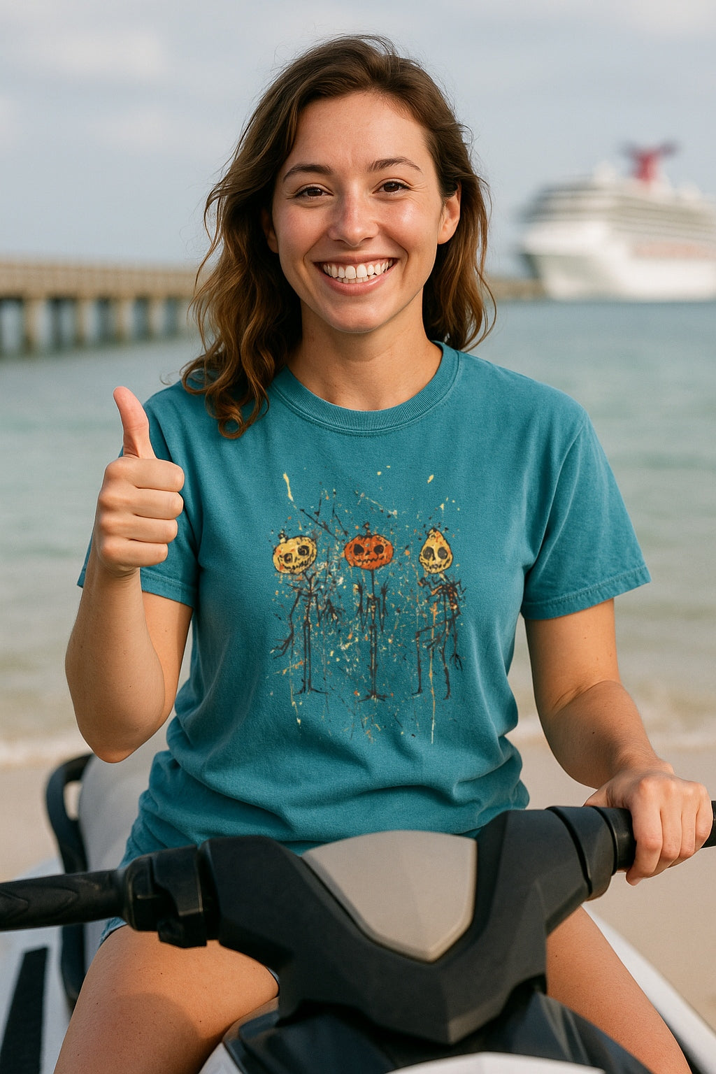 Embrace the chaotic and colorful side of Halloween with our Abstract Splatter Pumpkin T-shirt. Perfect for artists, rebels, or anyone who loves a little creative madness, this shirt features bold jack-o’lanterns dripping with color and chaos in a Pollock-inspired design. Stand out at Halloween parties or festivals with this artsy and unique tee.