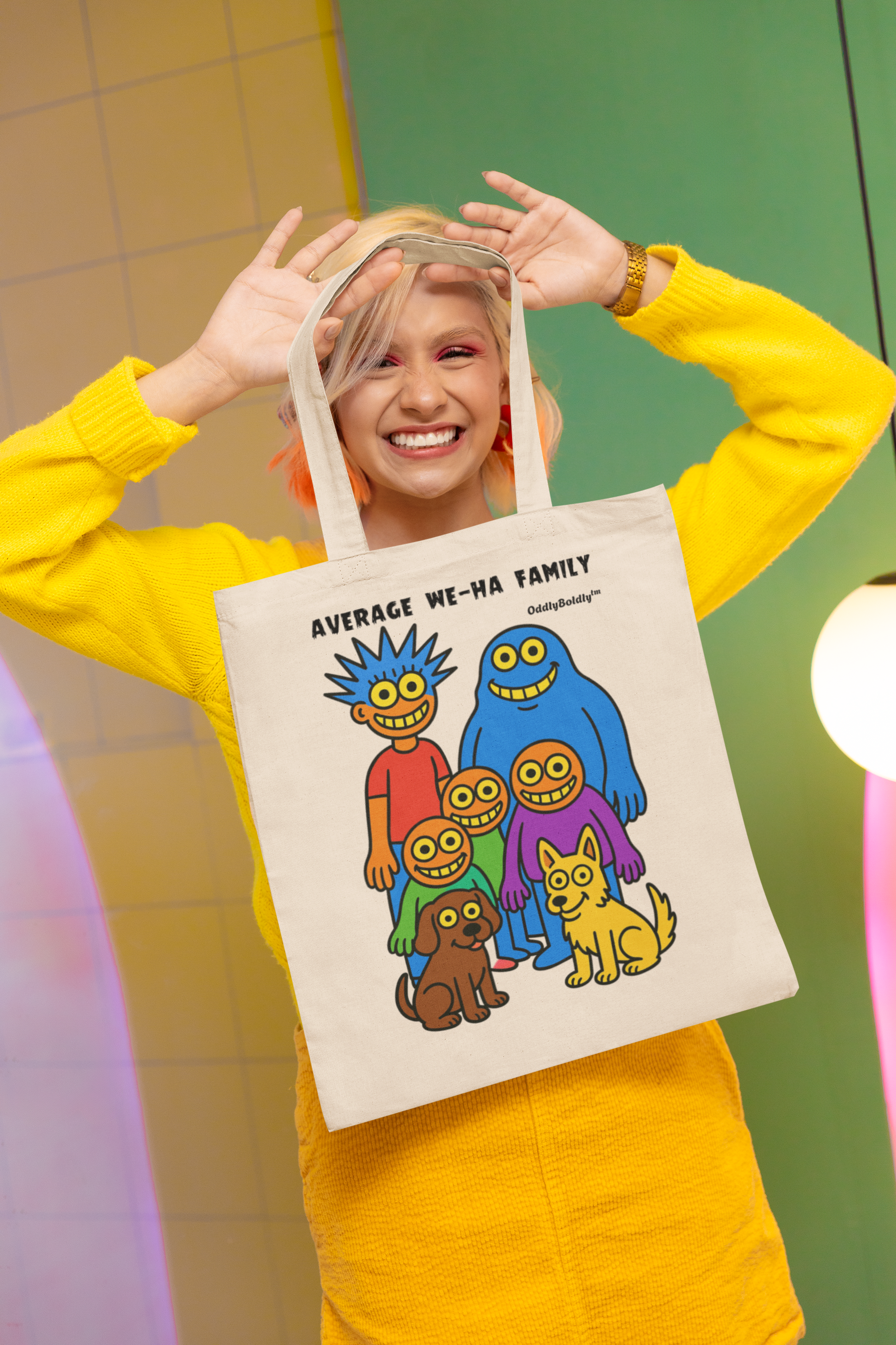 Colorful Average We-Ha Family Cotton Canvas Tote Bag, Eco-Friendly Grocery Bag, Fun Gift for Parents, Casual Everyday Use, Artwork Tote