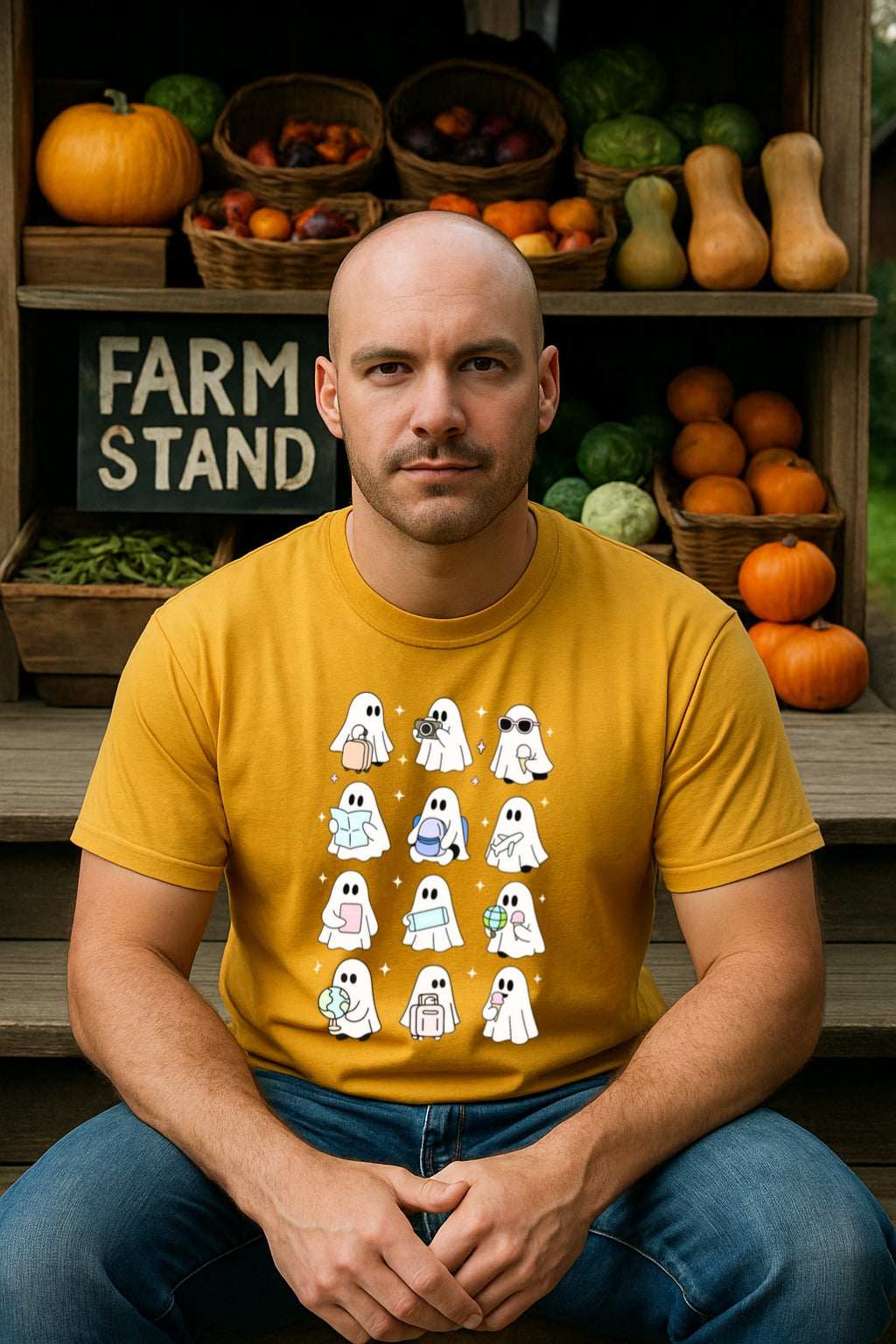 Travel Ghosts Shirt—This charming Halloween travel T-shirt features adorable ghosts ready for their spooky adventure. Perfect for travel lovers, Halloween fans, or anyone who believes even ghosts need a vacation. It gives a fun and whimsical vibe, making it a great addition to your outfit for Halloween or any travel-themed occasion. Product features - Available in multiple sizes from S to 4XL for the perfect fit - Double-needle stitching for durability - Garment-dyed fabric for a soft color and texture - Made with 100% US cotton for long-lasting comfort - Relaxed fit and crew neckline for versatile styling options Care instructions: Machine wash cold (max 30°C or 90°F). - Do not bleach. - Tumble dry: low heat - Iron, steam, or dry: low heat - Do not dry-clean