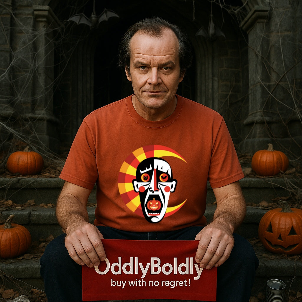 Bring avant-garde chaos to spooky season with this Halloween Fear Abstract Face T-Shirt. The design fuses abstract Kandinsky-inspired geometry with horror vibes, featuring a creepy clown-like mask with pumpkin eyes and a jack-o’-lantern mouth set against a bold crescent moon. Perfect for art fans and Halloween lovers looking to stand out at parties, haunted houses, or in bold streetwear. Ideal for Halloween and gothic-themed celebrations.