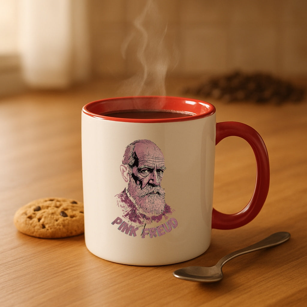 Funny Psychology Coffee Mug - Pink Freud Parody Cup, Therapist Gift, 11oz and 15oz Ceramic, Psych Humor
