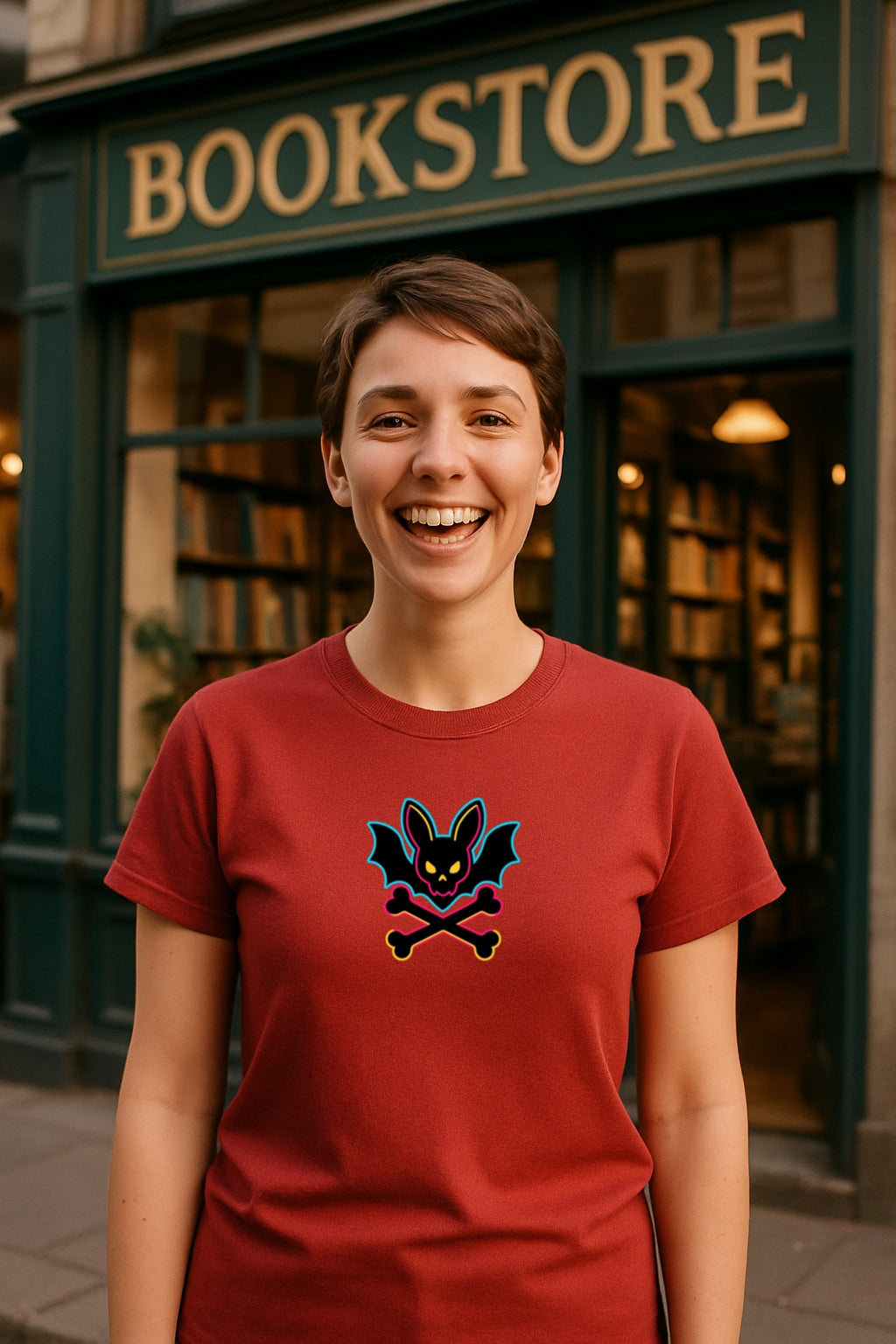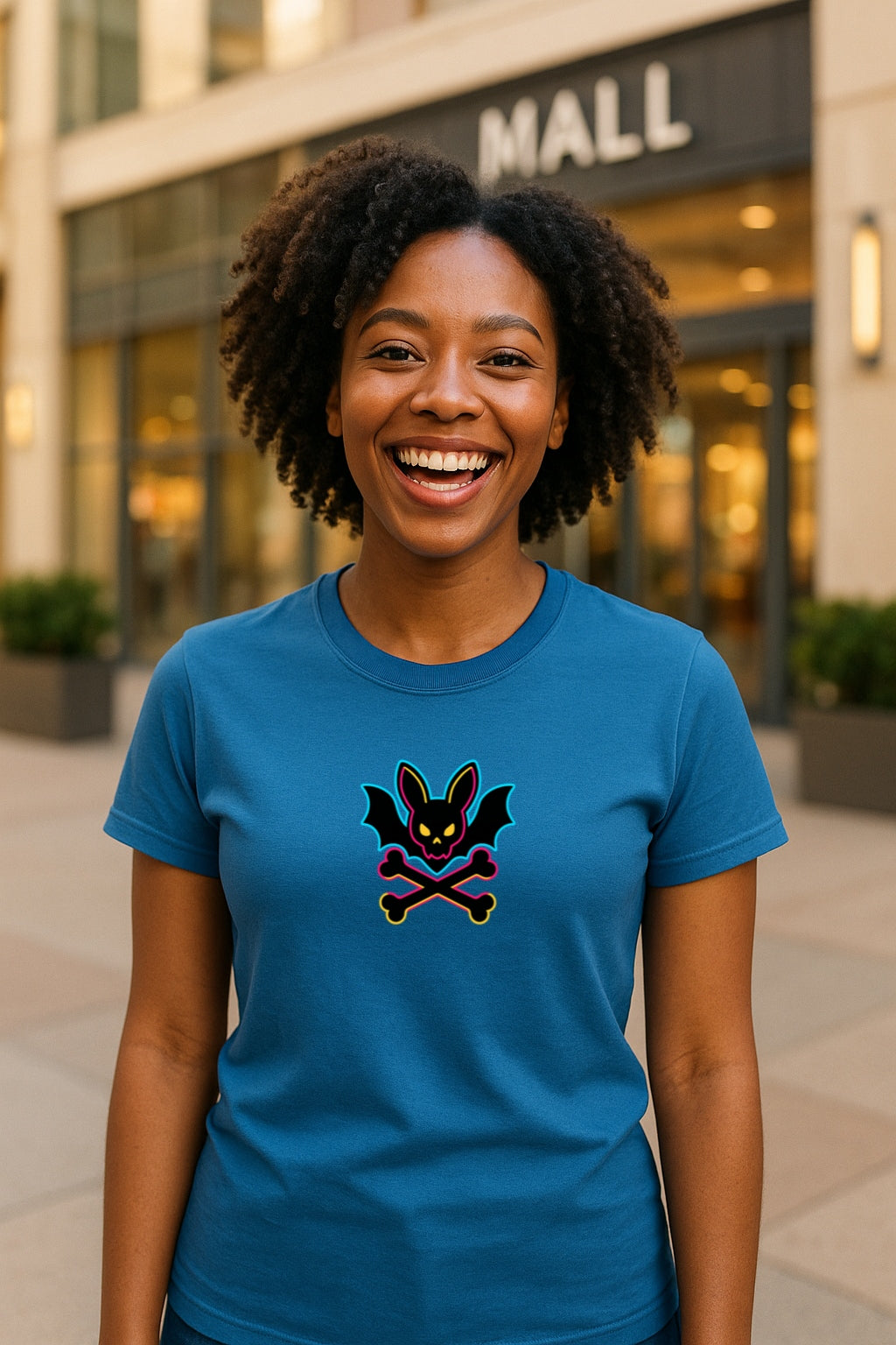 Say goodbye to drama and hello to bold, stylish looks. This playful tee features a winged skull bat. It is perfect for punks, goths, rebels, or anyone who is done with the BS. Bright, clean lines pop on every shirt color. The shirt is designed to exude maximum attitude while maintaining a cute twist. Soft and comfy unisex fit Vibrant print on light and dark fabrics Available in multiple colors and sizes Great for gifts, festivals, and everyday rebellion 🎸 Great for concerts, festivals, or just surviving Monday. 💀 Features neon outlines, heavy metal-inspired font, and rebellious bunny energy. 💥 Looks stunning on dark AND light shirts! Introducing a stylish and comfortable unisex softstyle t-shirt that embodies a fun, playful vibe. This tee features an eye-catching design, perfect for those who appreciate a unique touch in their wardrobe. The lightweight fabric ensures you stay cool and comfortable throughout the day, making it an excellent choice for casual outings or relaxing at home. It's ideal for anyone looking to express their personality and style, especially during casual gatherings, birthdays, or even Halloween celebrations. This t-shirt is a versatile essential that fits seamlessly into a modern wardrobe, making it a delightful gift for friends or loved ones who love quirky fashion and individuality. Product features - Made from 100% ring-spun cotton for a soft, comfortable feel all year round. - Classic fit and crew neckline deliver a versatile style that suits any occasion. - Ethically produced with US cotton, ensuring sustainable practices. - Durable fabric with no side seams for a neat appearance and reduced waste. - DTF printing method for high-quality and vibrant designs on the shirt. Care instructions - Do not dryclean - Do not bleach - Tumble dry: low heat - Iron, steam or dry: low heat - Machine wash: cold (max 30°C or 90°F), with similar colors