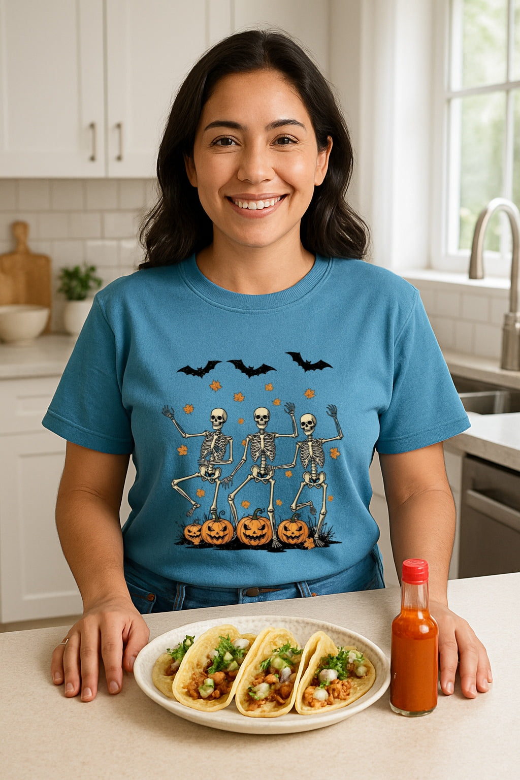 Halloween Shirt-Spooky Jack-O-Lantern Tee- Unisex Comfort Colors® Dancing Skeletons , Retro Skeleton Dance T-Shirt, Funny Fall Halloween