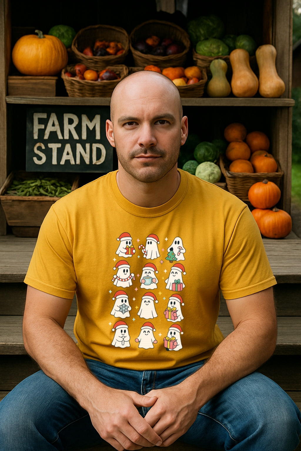 Holiday Ghosts T-shirt - Cute Christmas Ghosts with Gifts & Santa Hats - Funny Halloween Christmas Tee - Spooky Xmas Shirt - Ghost Lover