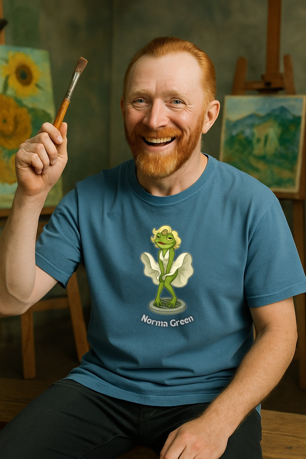 Meet Norma Green—the amphibian answer to vintage glam. This hilarious twist on an iconic pose features a stylish frog channeling her inner Marilyn. Perfect for frog lovers, pun enthusiasts, and fans of oddball humor. The tee has a relaxed unisex fit and vintage aesthetic, printed on ultra-soft Comfort Colors 1717 tees for a vintage look and lived-in feel. Ideal gifts for quirky friends, frog fans, and fashion rebels. Relevant for holidays, celebrations, and occasions related to humor, quirky gifts, and fashion. Product features - Available in multiple sizes from S to 4XL for the perfect fit - Double-needle stitching for durability - Garment-dyed fabric for a soft texture - Made with high-quality 100% US cotton for long-lasting comfort - Relaxed fit and crew neckline for versatile style Care instructions - Machine wash: cold (max 30°C or 90°F) - Do not bleach. - Tumble dry: low heat. - Iron, steam, or dry: low heat - Do not dry clean.