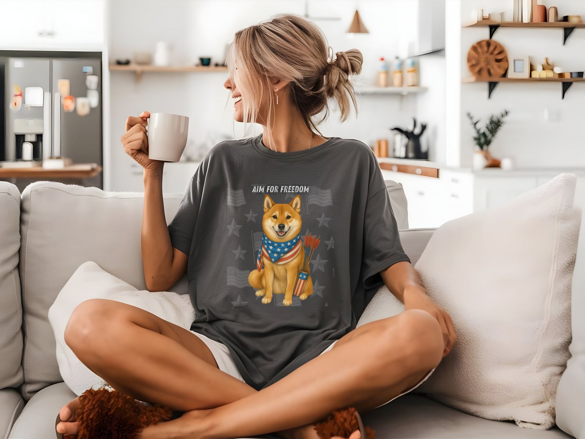 Shiba Inu Patriotic Unisex T-Shirt - 4th of July Funny Dog Shirt -USA Flag - American Pride Pet Tee Great Gift
