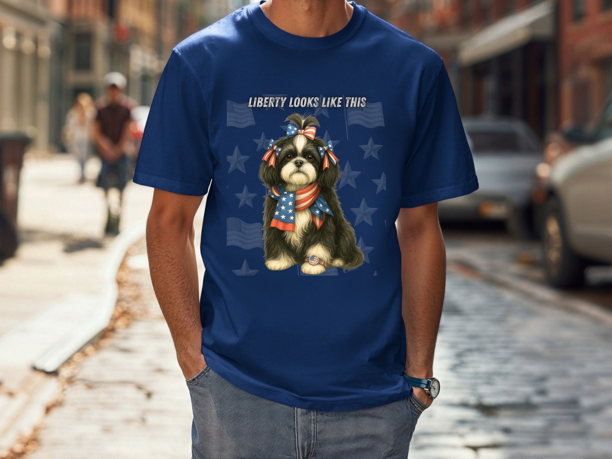 Shih Tzu Patriotic Unisex T-Shirt - 4th of July Funny Dog Shirt -USA Flag - American Pride Pet Tee Great Gift