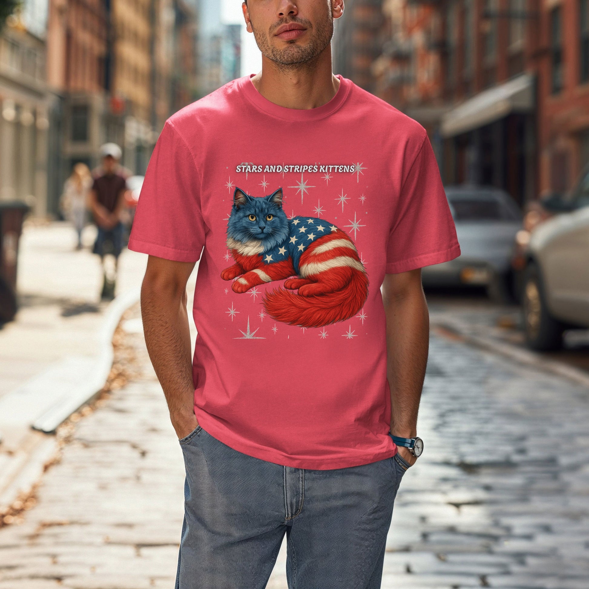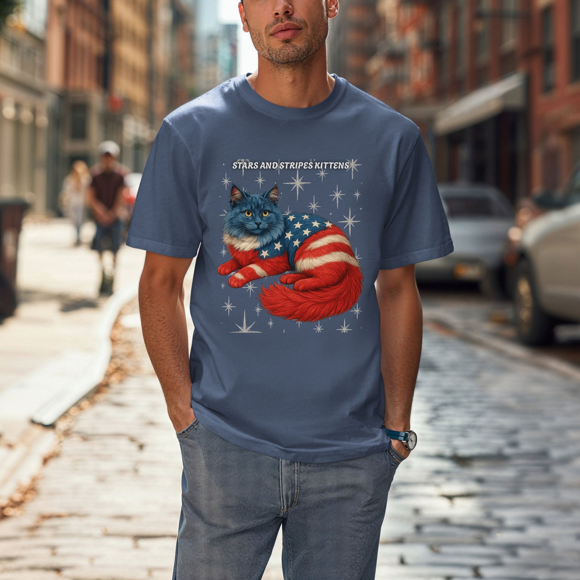 Stars and Stripes Cat Unisex Tee Funny USA Flag Kitty Graphic Tee Patriotic Cat Shirt for 4th of July Ragdoll Cat Lovers Gift