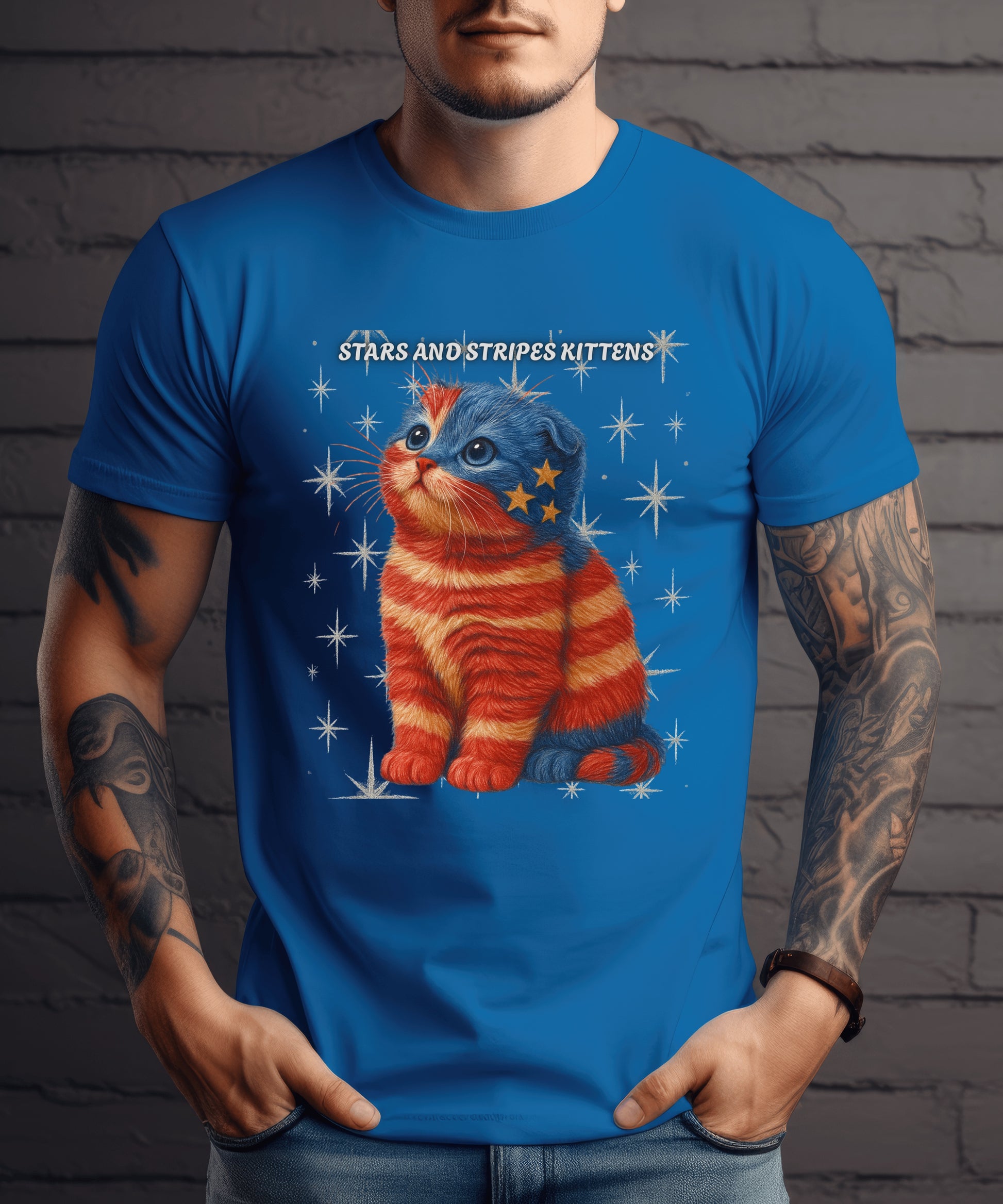 Stars and Stripes Cat Unisex Tee Funny USA Flag Kitty Graphic Tee Patriotic Cat Shirt for 4th of July Scottish Fold Cat Lover Gift