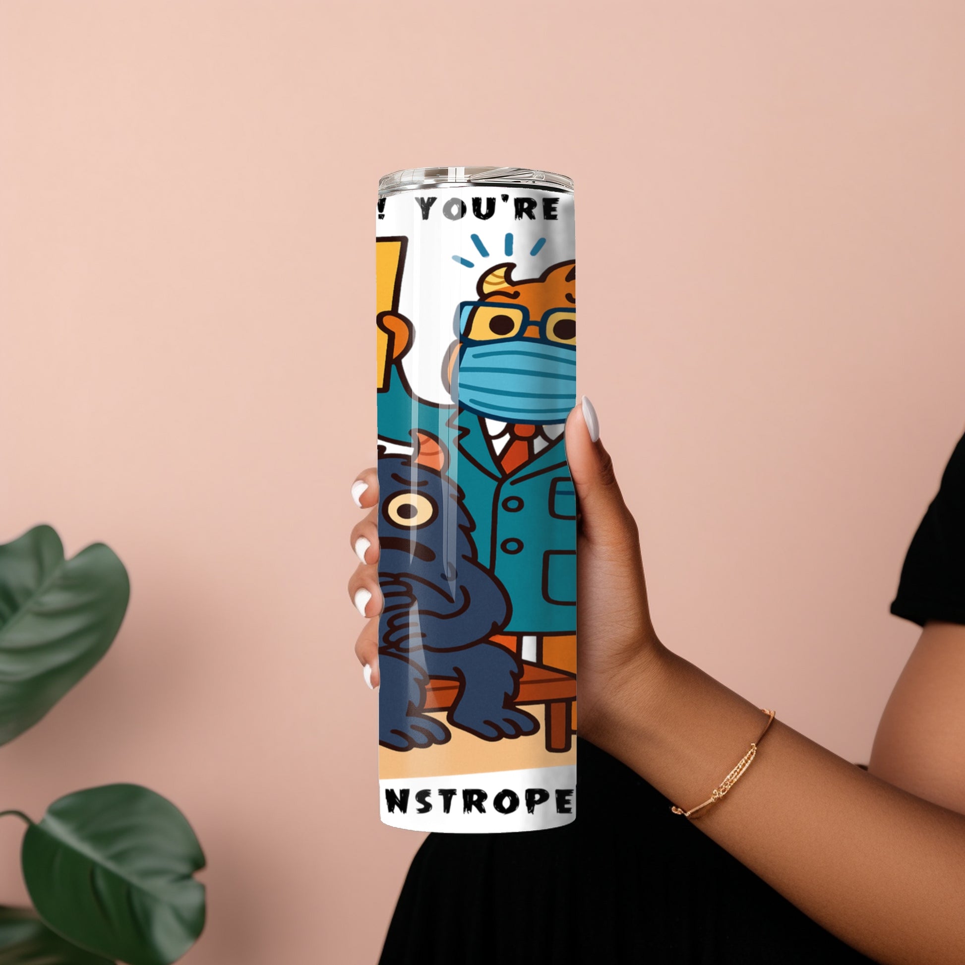 This stainless steel tumbler, adorned with cute, funny monsters posing as doctors and nurses before surgery, is an ideal gift for medical professionals with a sarcastic sense of humor. The glossy finish and high-grade material ensure durability and resistance to rust and corrosion. This tumbler is perfect for individuals who value hospital humor and seek a whimsical touch in their everyday routines.
