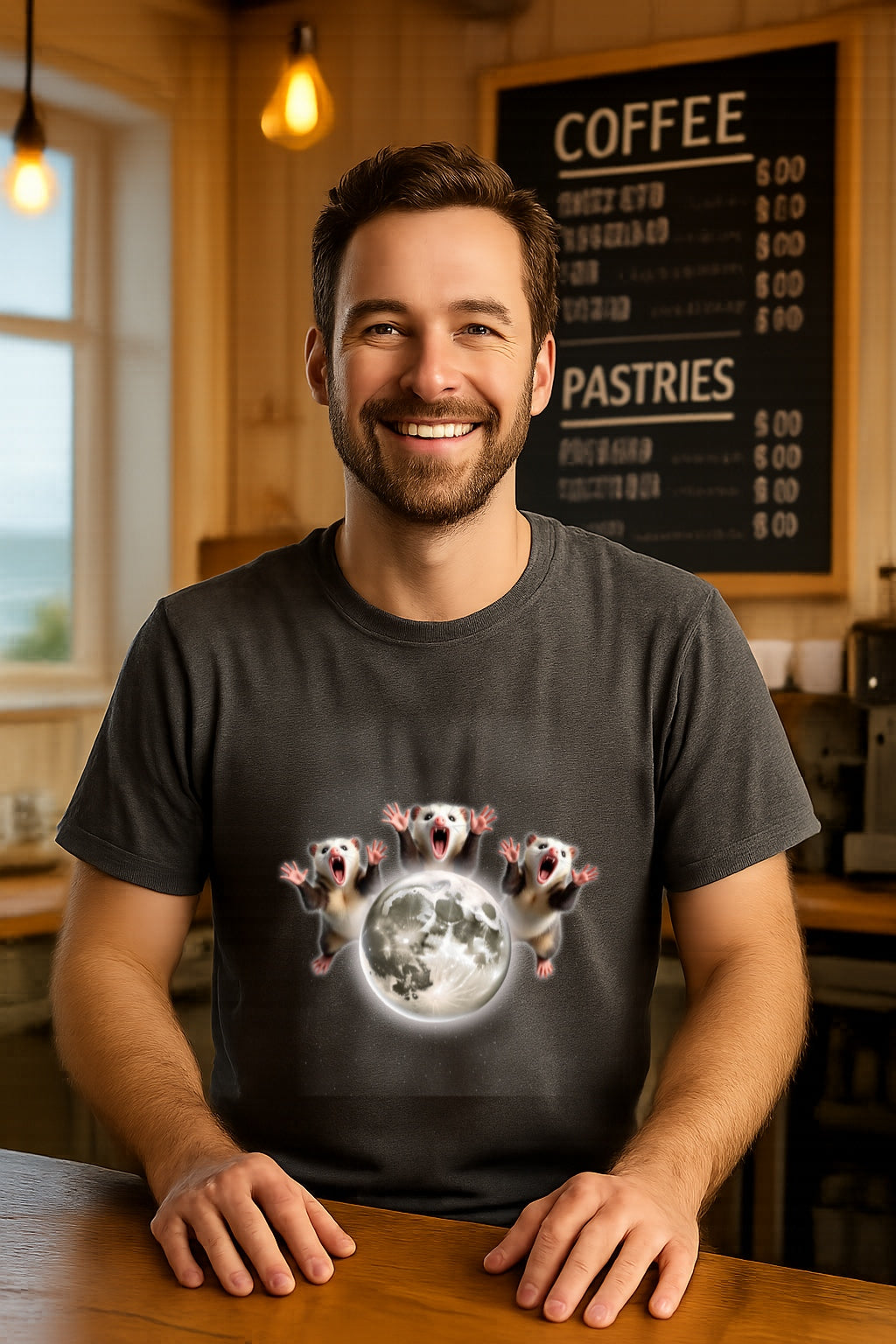 Let the night begin with a chorus of chaos! This hilarious tee features three dramatic possums howling at the moon in full vintage glory. Perfect for opossum lovers, moon worshippers, or anyone who thrives on weird energy.