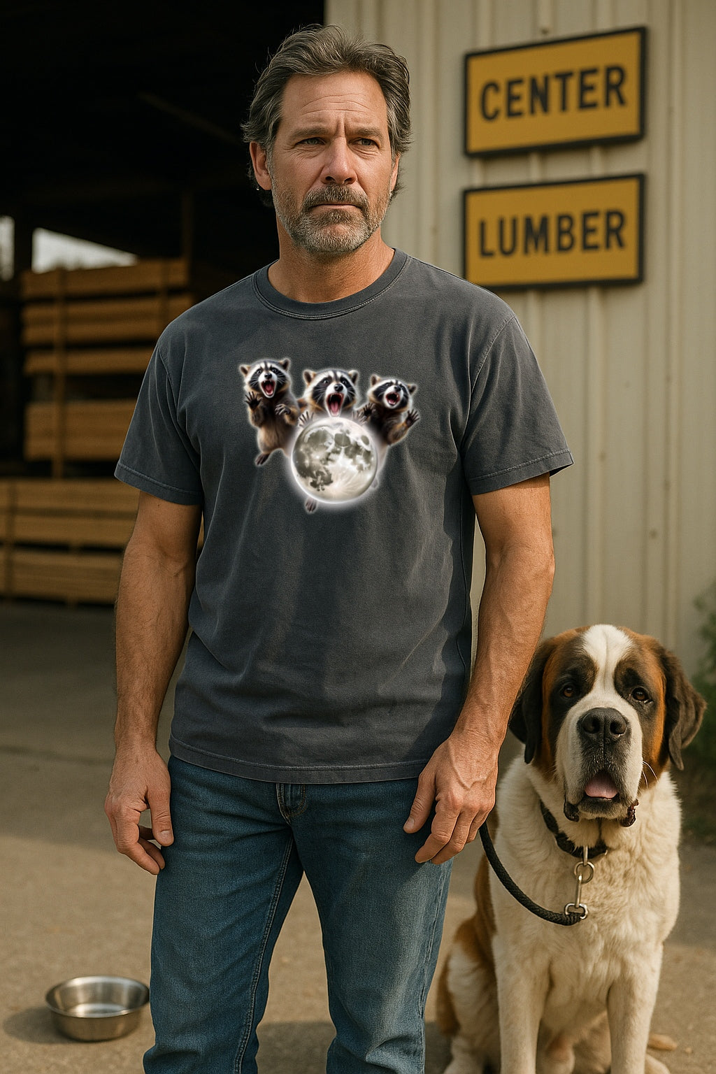 Three Raccoons Howling at the Moon- Midnight Screaming at the Moon, Full Moon Party Animal Washed T-shirt, Silly Nature Lover Gift