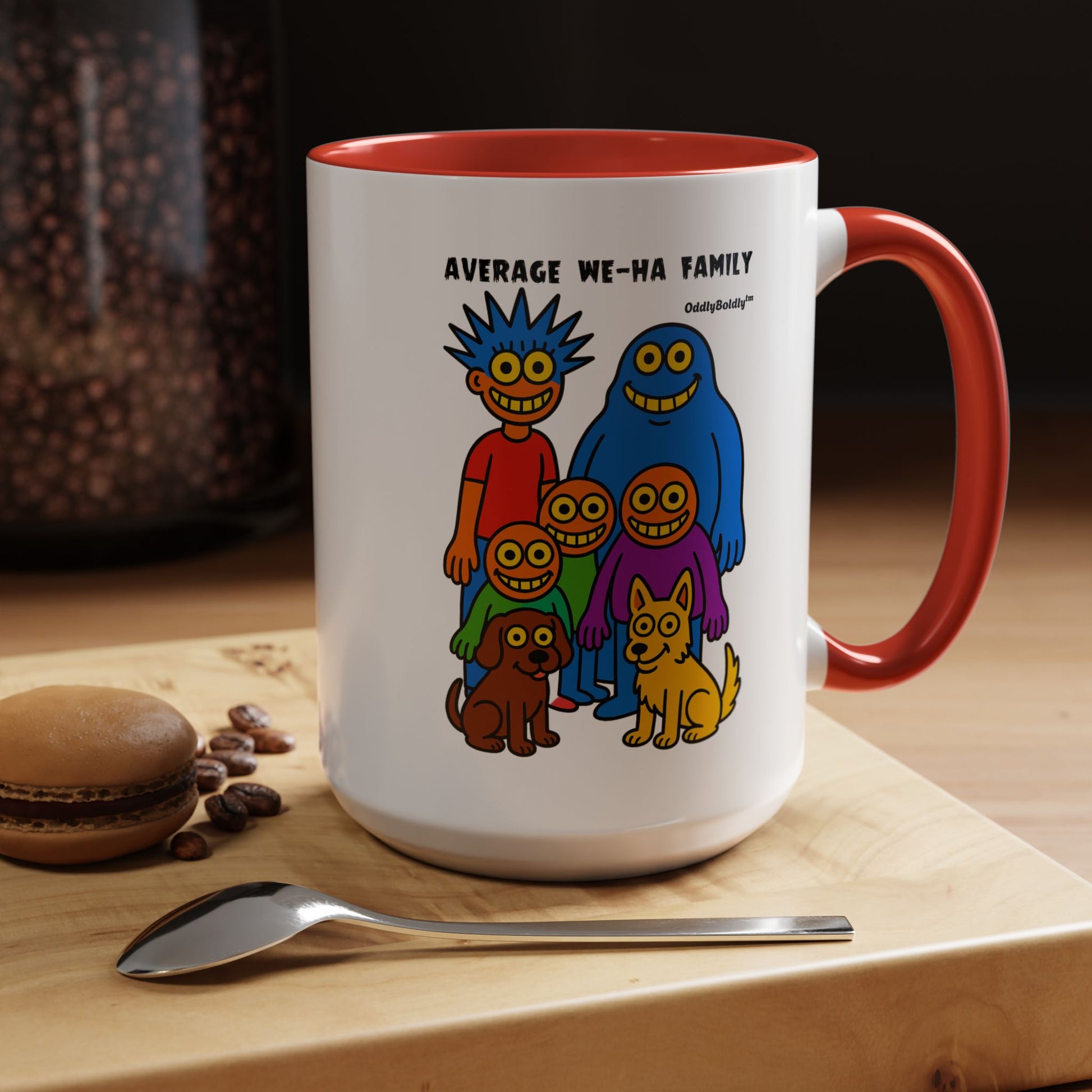 West Hartford Average Family Mug – Funny Local Cartoon Gift, Quirky Monster Coffee Cup, Colorful Small Town Humor